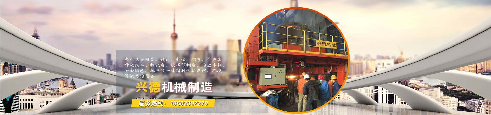 宜興市興德機械制造有限公司專業從事研發、設計、制造、銷售、生產各種澆鋼車、翻包臺、液壓傾翻臺、冶金車輛、冶金罐包、機電液一體特種運輸車輛、環境污染防治設備。興德機械自創建以來,一直保持著穩健的發展態勢,在產品設計和技術研發上,擁有工程師專家團隊和專業精湛、勇于創新的中青年專業技術人員,產品涉及冶金、環保等行業,并以其先進的工藝技術、可靠的產品質量、及時周到的服務和誠實守信的經營理念在行業享有盛譽,... ...